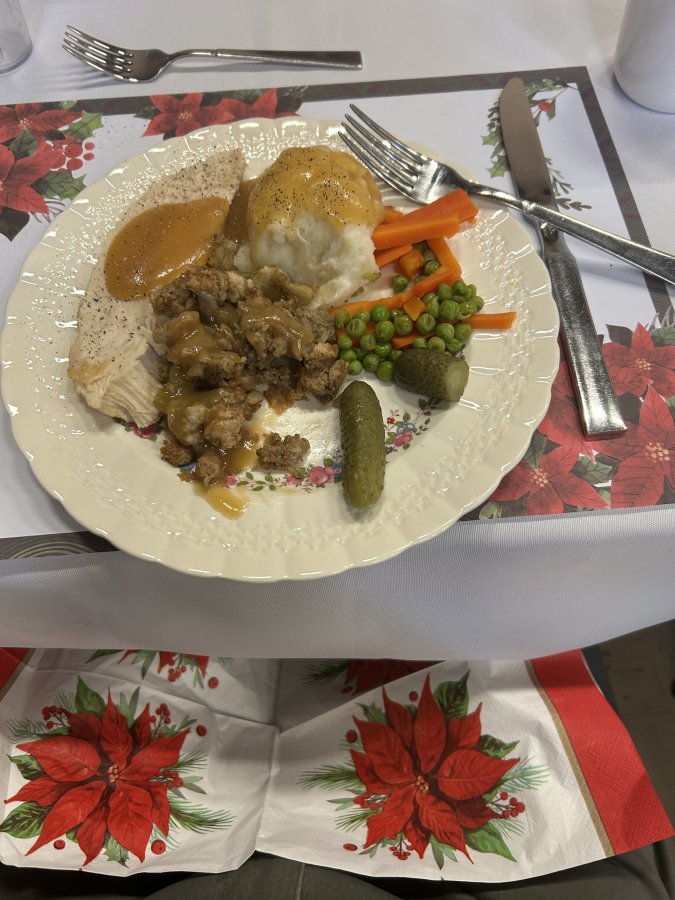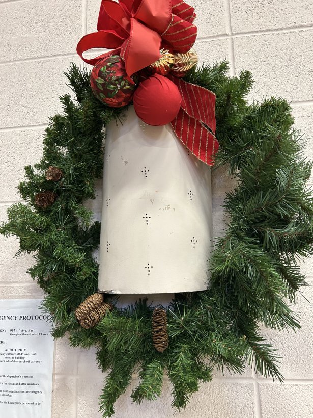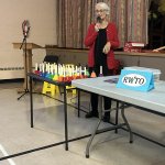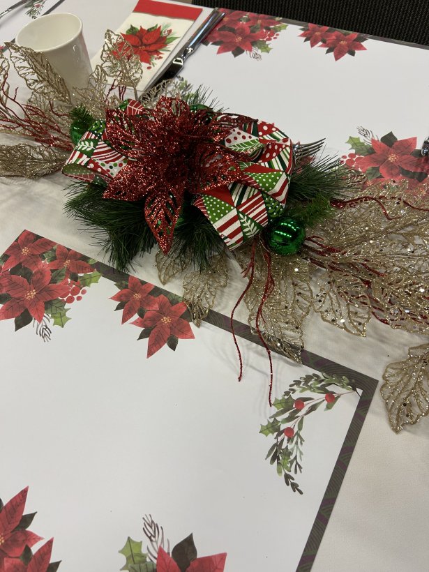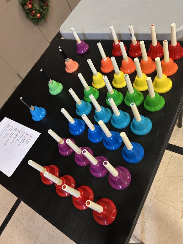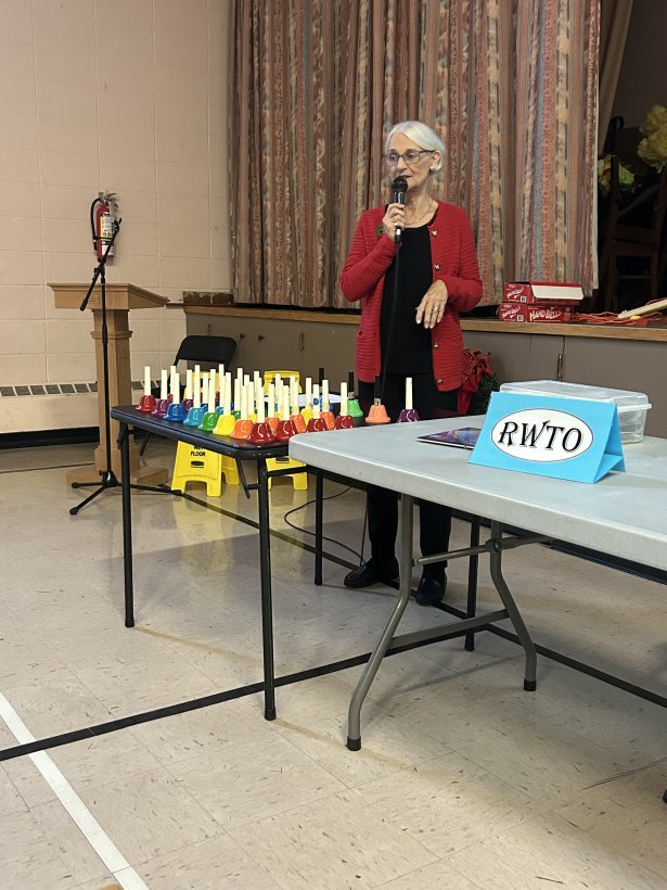 On November 27, the Owen Sound and Area retired women teachers were treated to a wonderful Christmas turkey dinner with all the trimmings. The ladies of the Georgian Shores Church once again served a festive and delicious Christmas lunch. After lunch, one of our very talented members, Laurie James lead us in Christmas Carols and other seasonal songs using bells. The bells were colour coded to the notes of the songs which were projected onto a screen. Different members selected different coloured bells to ring out the songs while everyone sang. It was great fun for all.