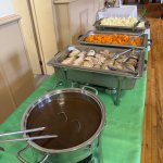 A delicious pork tenderloin lunch was enjoyed by everyone. The pie selections were great. Jackie Spalding thanked the women from the church who had prepared the delicious meal for us.