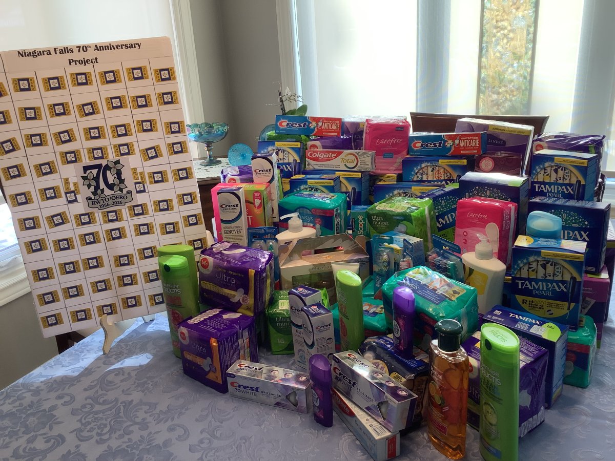 Niagara Falls branch is happy to participate in the celebration of the 70th anniversary of RWTO/OERO. Linda Dueck, branch Treasurer and Membership Convenor, initiated our anniversary project—collecting feminine hygiene products and toiletries for women in need. The entire branch contributed to the success of the project. We have collected a grand total of 96 products that we will donate to local organizations who serve women experiencing homelessness.