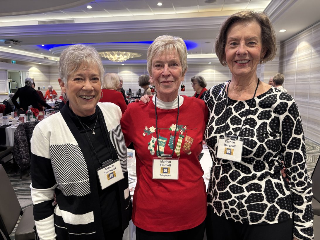 The Holiday Inn – a perfect site for our annual Christmas Luncheon! We had a full house of old and new friends as we welcomed a new member, bestowed Caring and Sharing awards to Linda Gaudet and Elaine Reimer and presented a donation of $10,300.00 to Community Care of St. Catharines and Thorold, represented by Betty Souter. After lunch we enjoyed a wonderful holiday sing-along led by Carol Morningstar. Thanks to all who organized, donated and helped make this a luncheon to remember!