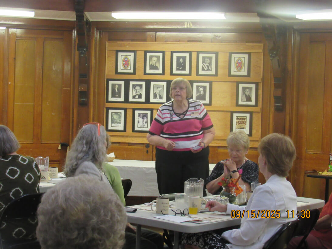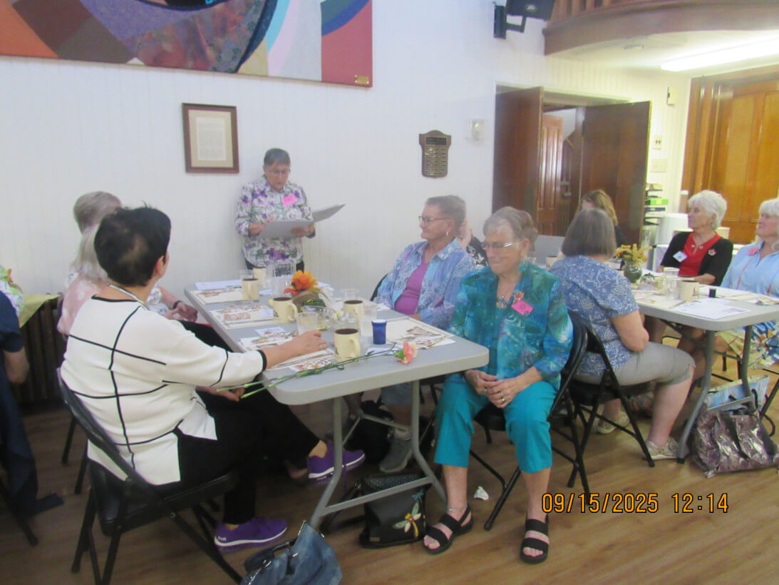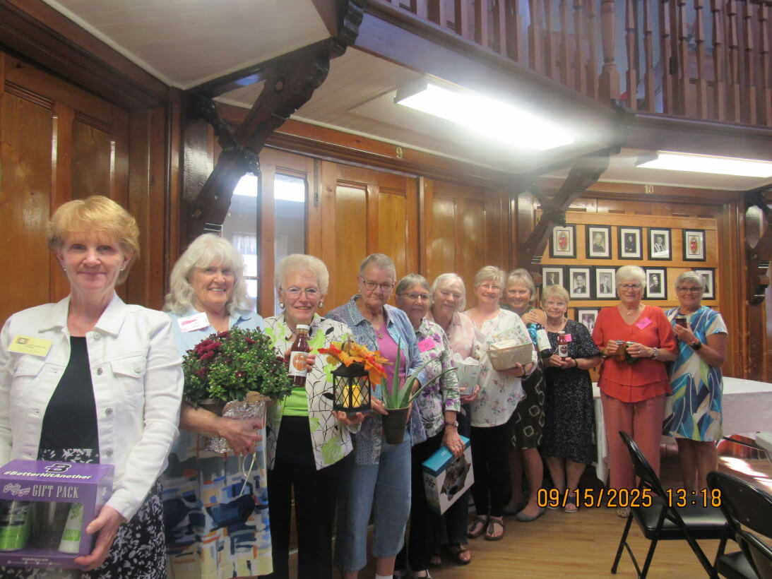 Fall has arrived, and with it, our first gathering of the Season. Over 40 ladies arrived at Winchester United church with gifts in hand to be auctioned at our annual Quarter Frenzy. We were delighted to have the Provincial President, Linda Sargeant, as an honoured guest. Sandie and Karen hosted the meeting, with Joyce giving carnations to the birthday gals and MaryEllen bringing laughter. We had a delicious luncheon, catered by the women of WUC. The highlight of the afternoon was the participation in the Quarter Frenzy. Each member brought an item, and BettyLou, our talented auctioneer, took bids on the various items. Everything from delicious fudge and beautiful fall flowers, to lovely handmade socks, bracelets, ointments, and Fall kitchen baskets, was won by some lucky ladies. We thank all who brought monetary donations to our local food banks, items for the quarter frenzy and the gift sharing table, as well as those who organized the meeting and prepared and served the lovely luncheon. It was a wonderful afternoon, and fun was had by all who stayed to enjoy it.